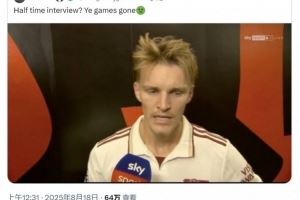 惠兰社媒转发厄德高中场休息接受采访的照片,并写道:“X的,这谁签的字(批准中场休息采访),我敢打赌他们从没穿过球鞋。”