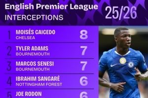 新赛季英超拦截榜: