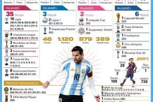 194场114球58助,6冠(1次世界杯2次美洲杯1次欧美杯1次奥运会1次世青赛)
